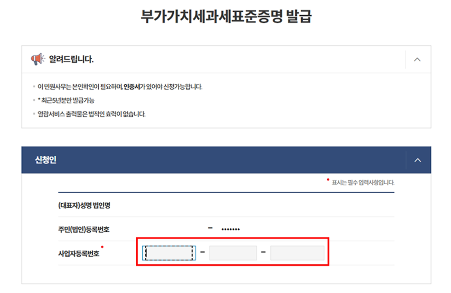 부가세 증명원 발급 시 유의사항