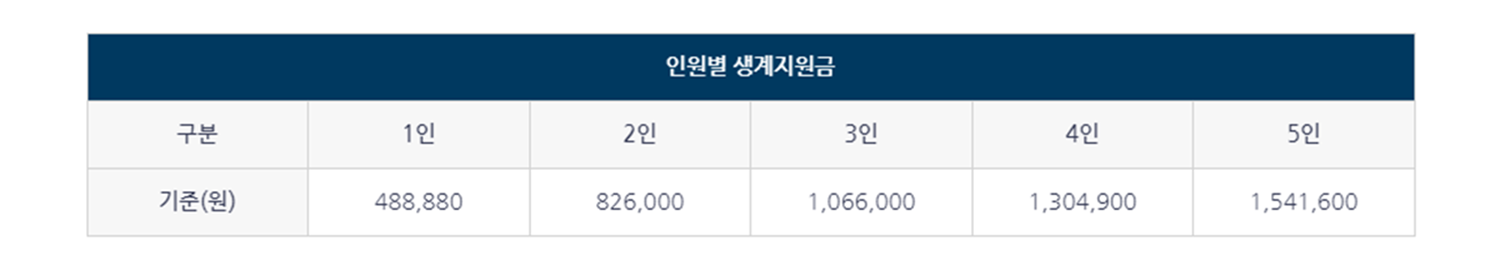 - 주 소득자의 사망, 가출, 실직 등의 사유로 소득을 상실하거나 생계가 곤란한 경우