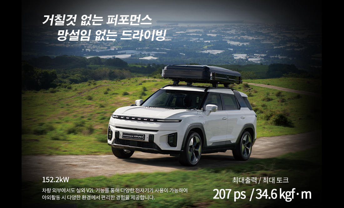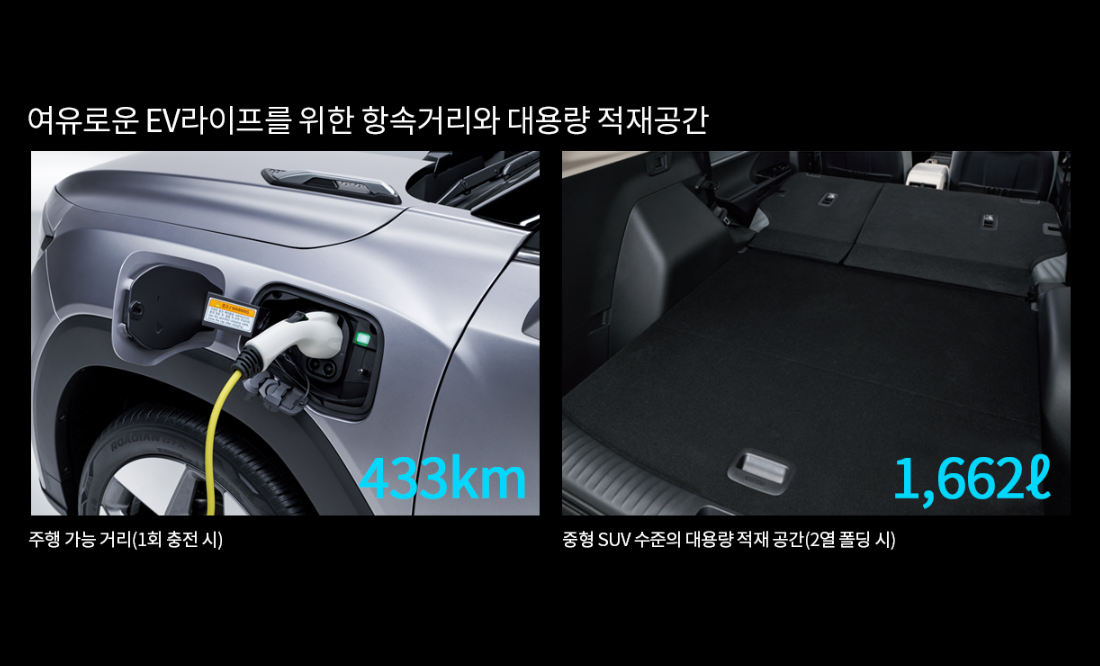 1회 충전에 433 km를 주행가능하고 기본적재공간이 836 리터로 많은 짐도 거뜬하게 운송할수 있는 토레스 EVX~!!!