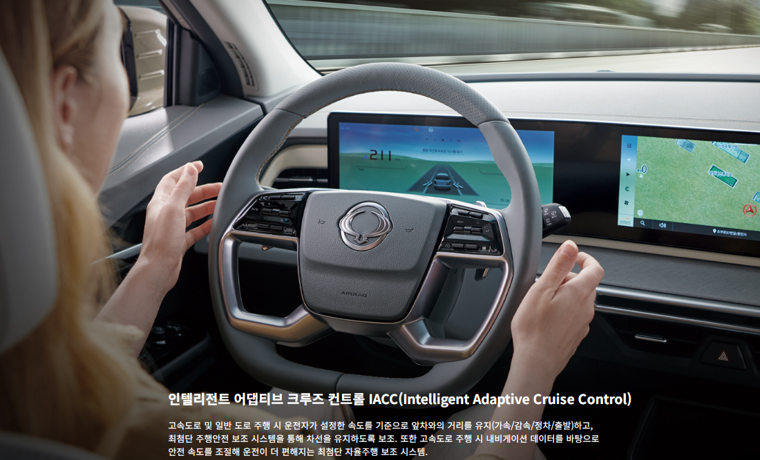 장거리 주행시에 운전피로감을 훨씬 덜 느낄수 있는 반자율주행기능인 인텔리전트 어댑티브 크루즈 컨트롤 IACC (Intelligent Adaptive Cruise Control) 이 기본으로 적용 되어있습니다.